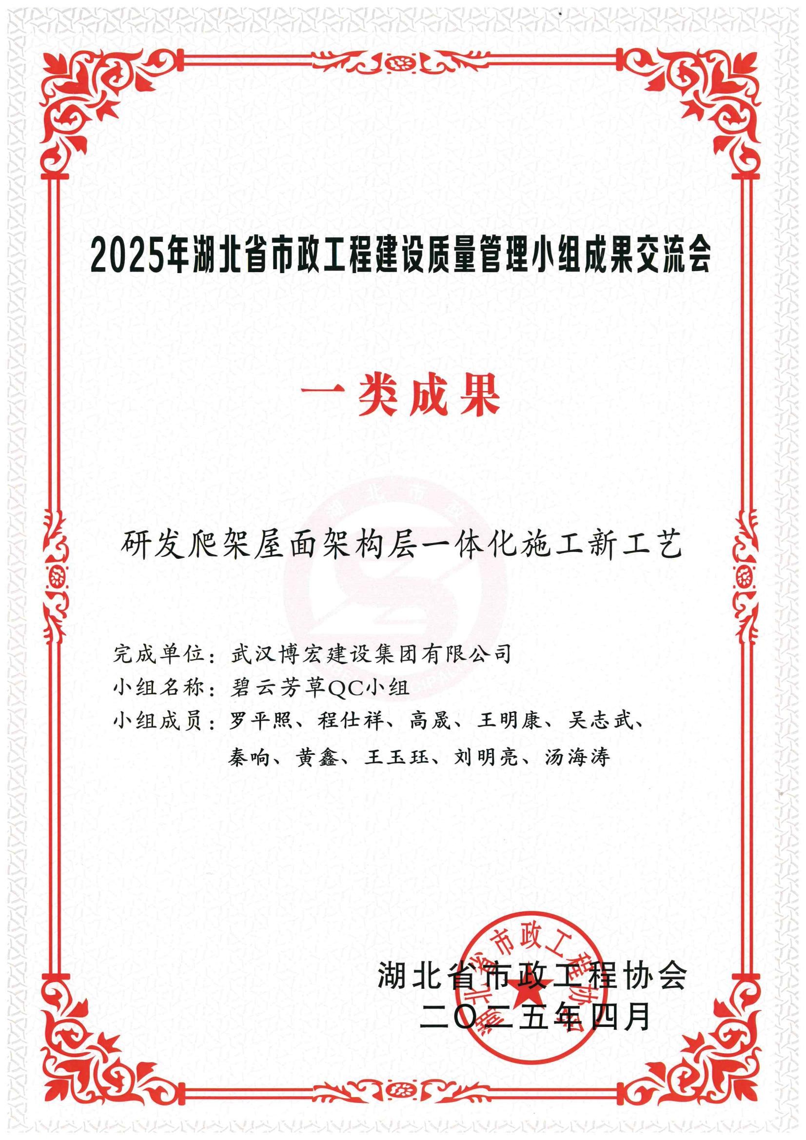 2025湖北省市政程協(xié)會-研發(fā)爬架屋面架構層一體化施工新工藝