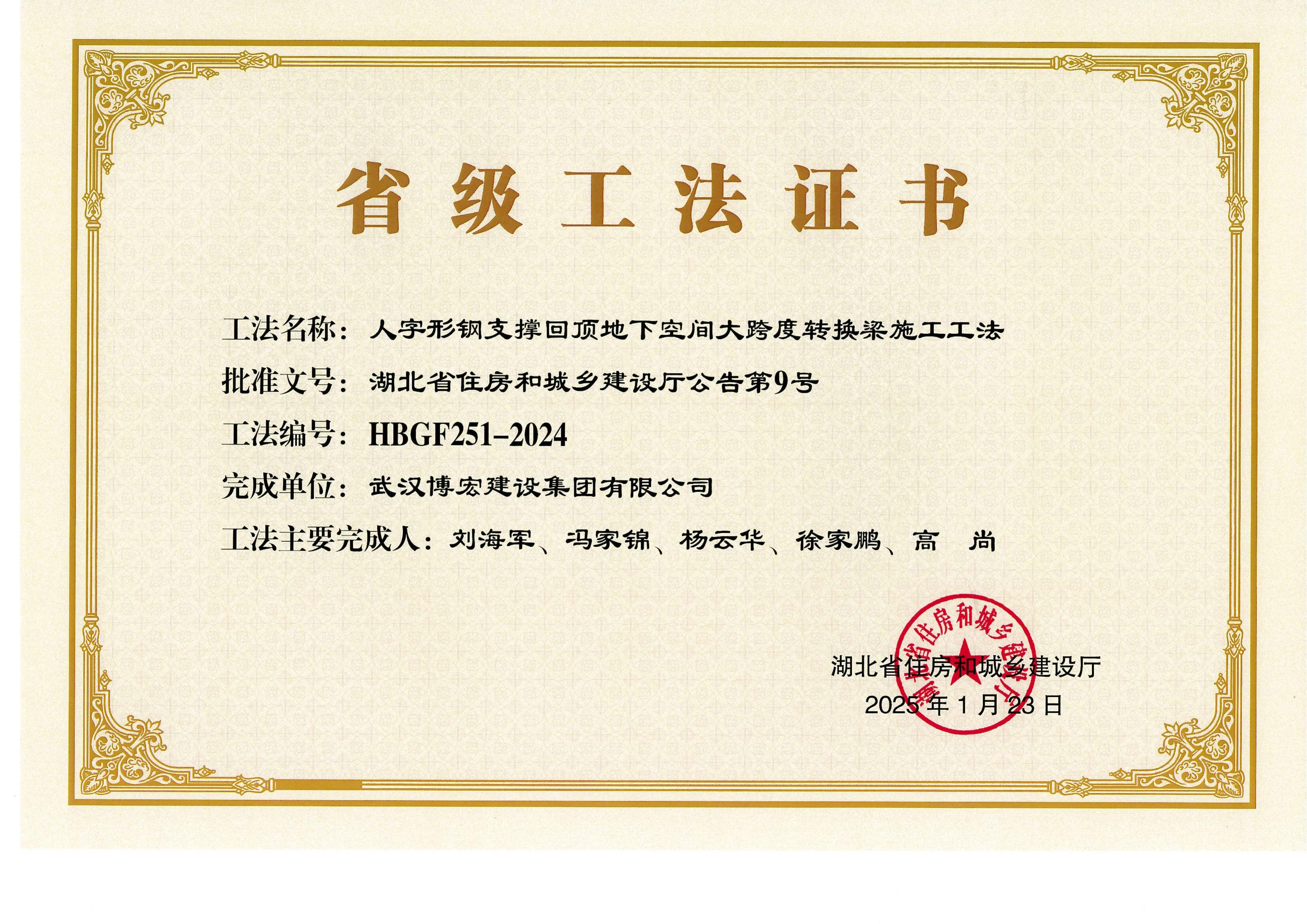 2025年湖北省住房和城鄉(xiāng)建設廳-人字形鋼支撐回頂?shù)叵驴臻g大跨度轉(zhuǎn)換梁施工工法