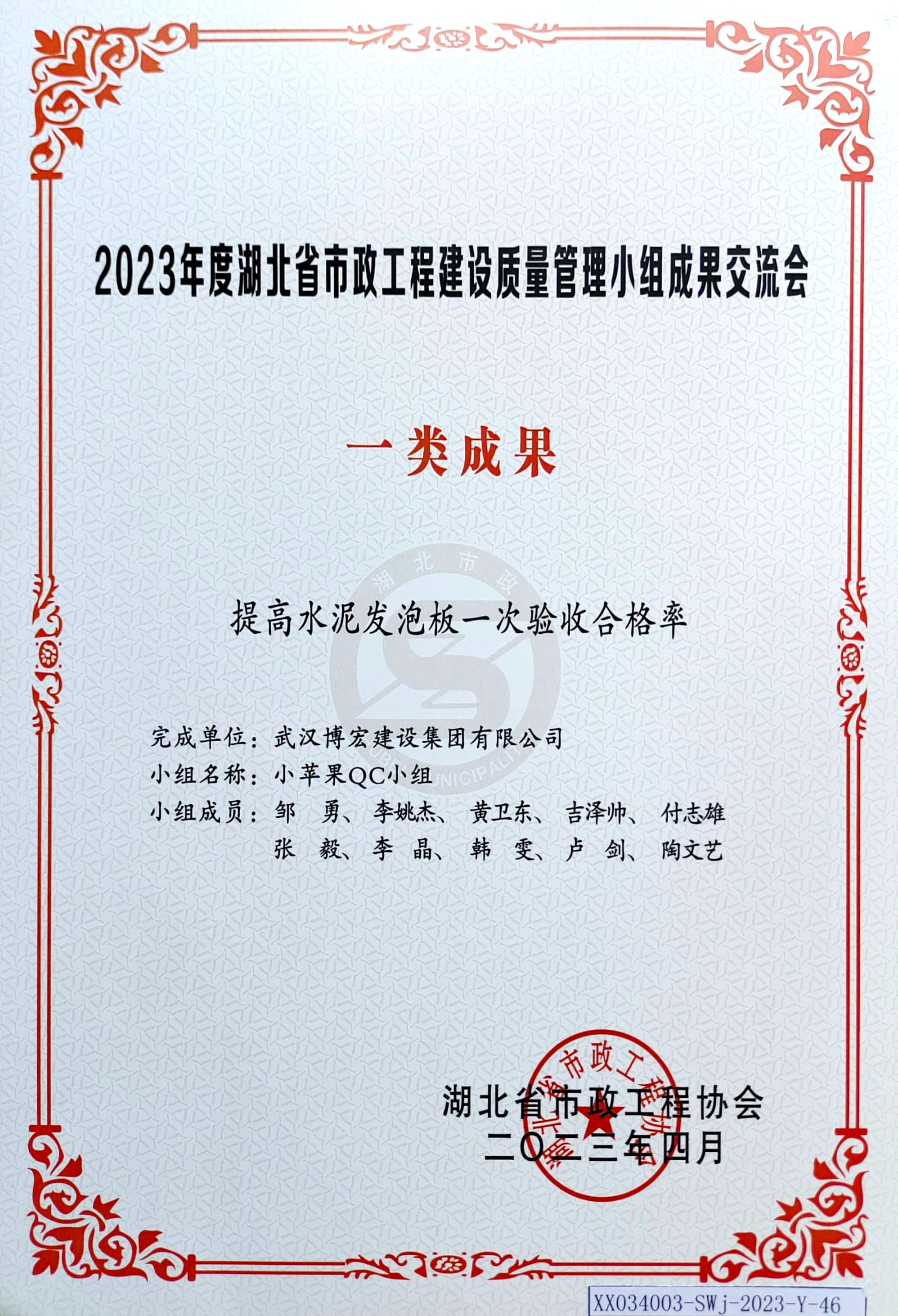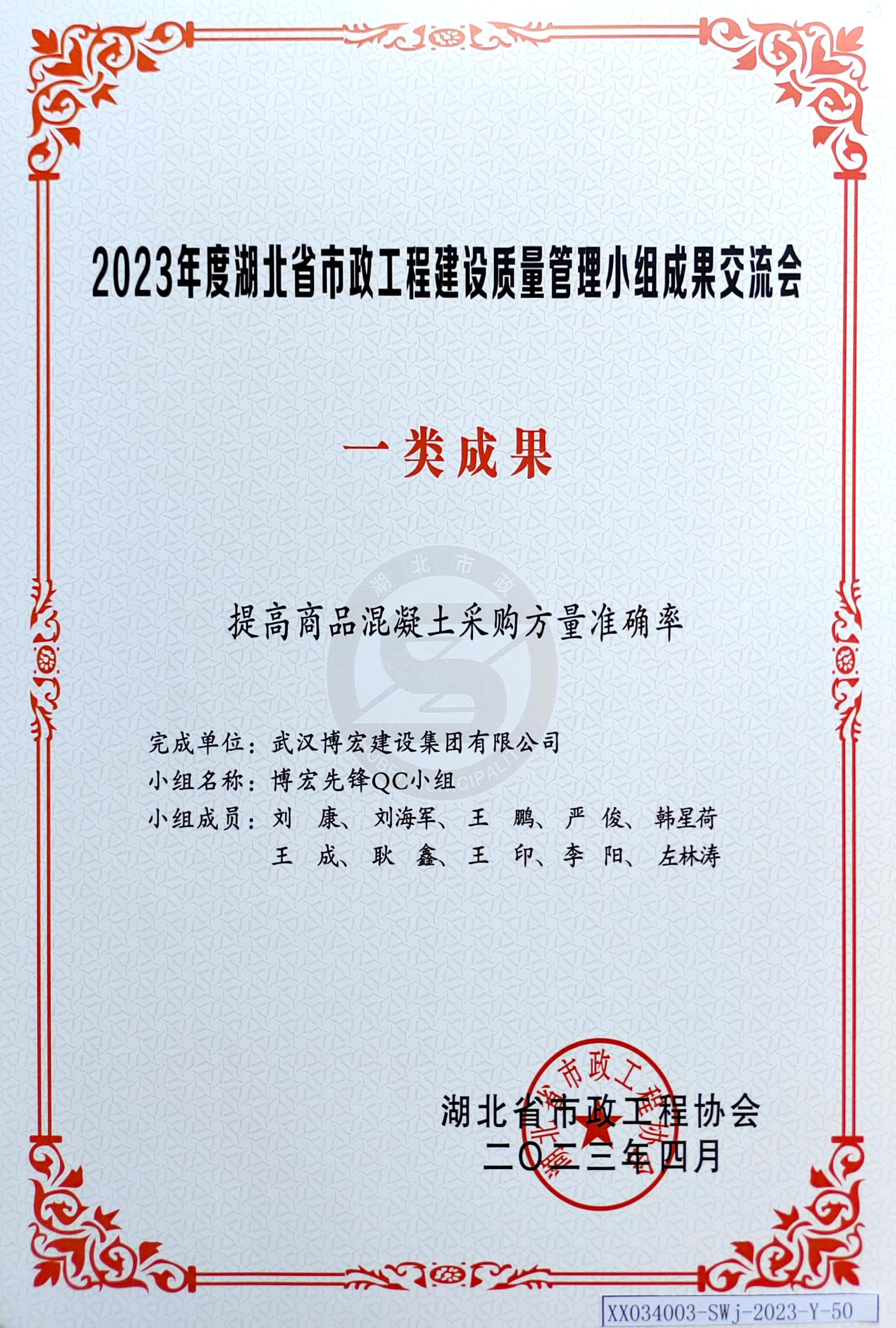2023年度湖北省市政工程建設(shè)質(zhì)量管理小組成果交流會 一類成果