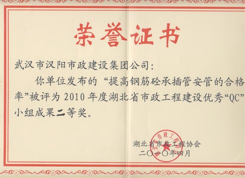 2012年度全國市政工程建設(shè)先進(jìn)質(zhì)量管理小組