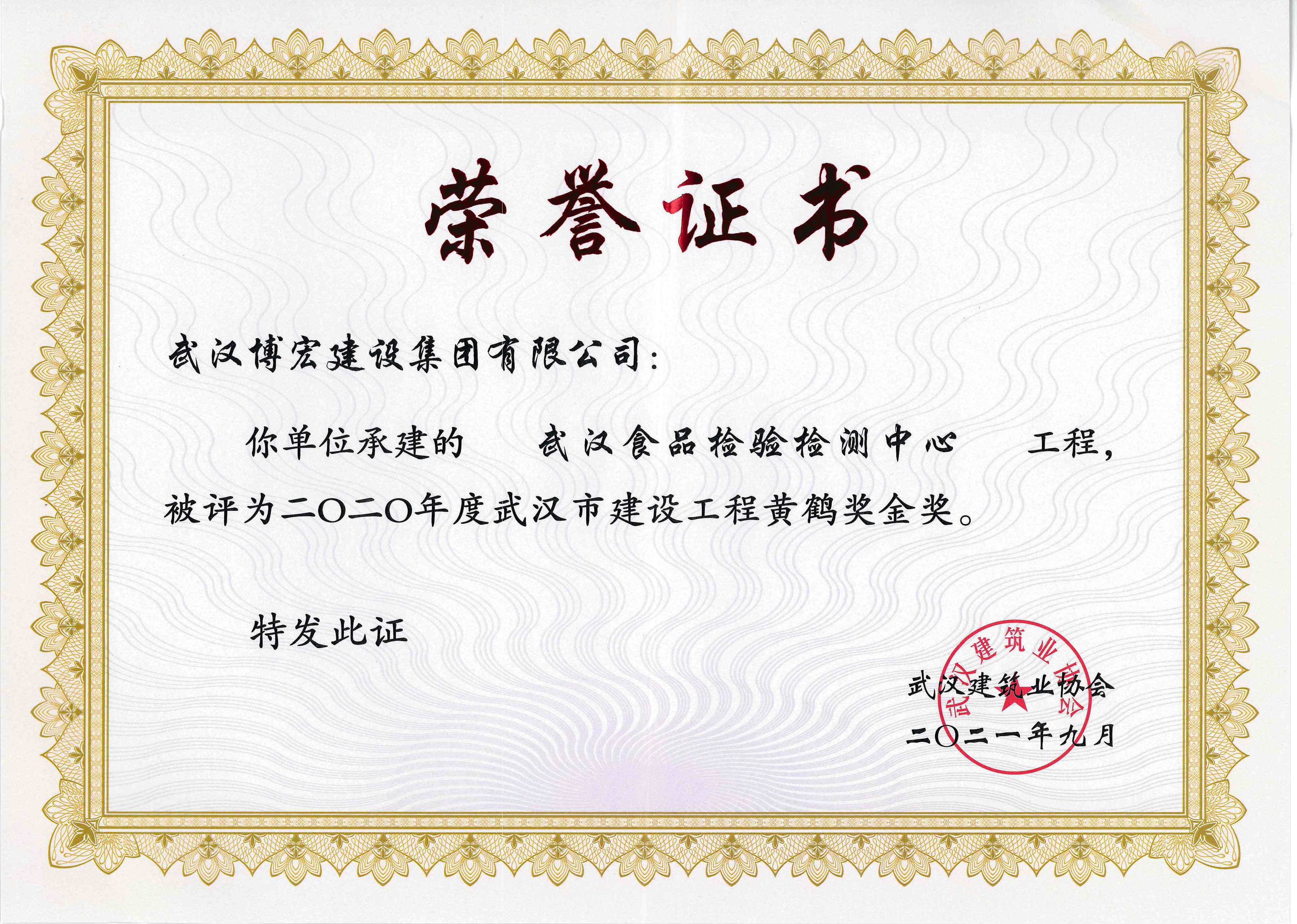 2020年度武漢市建設(shè)工程黃鶴獎金獎(食檢中心)