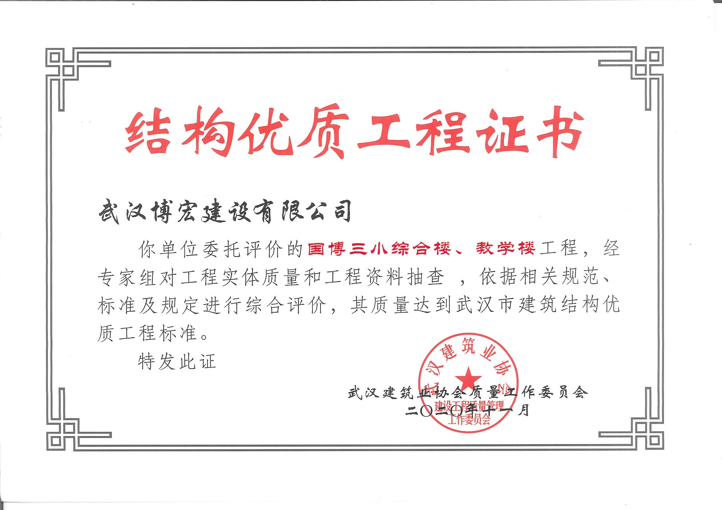 國博三小綜合樓、教學(xué)樓武漢市建筑結(jié)構(gòu)優(yōu)質(zhì)工程