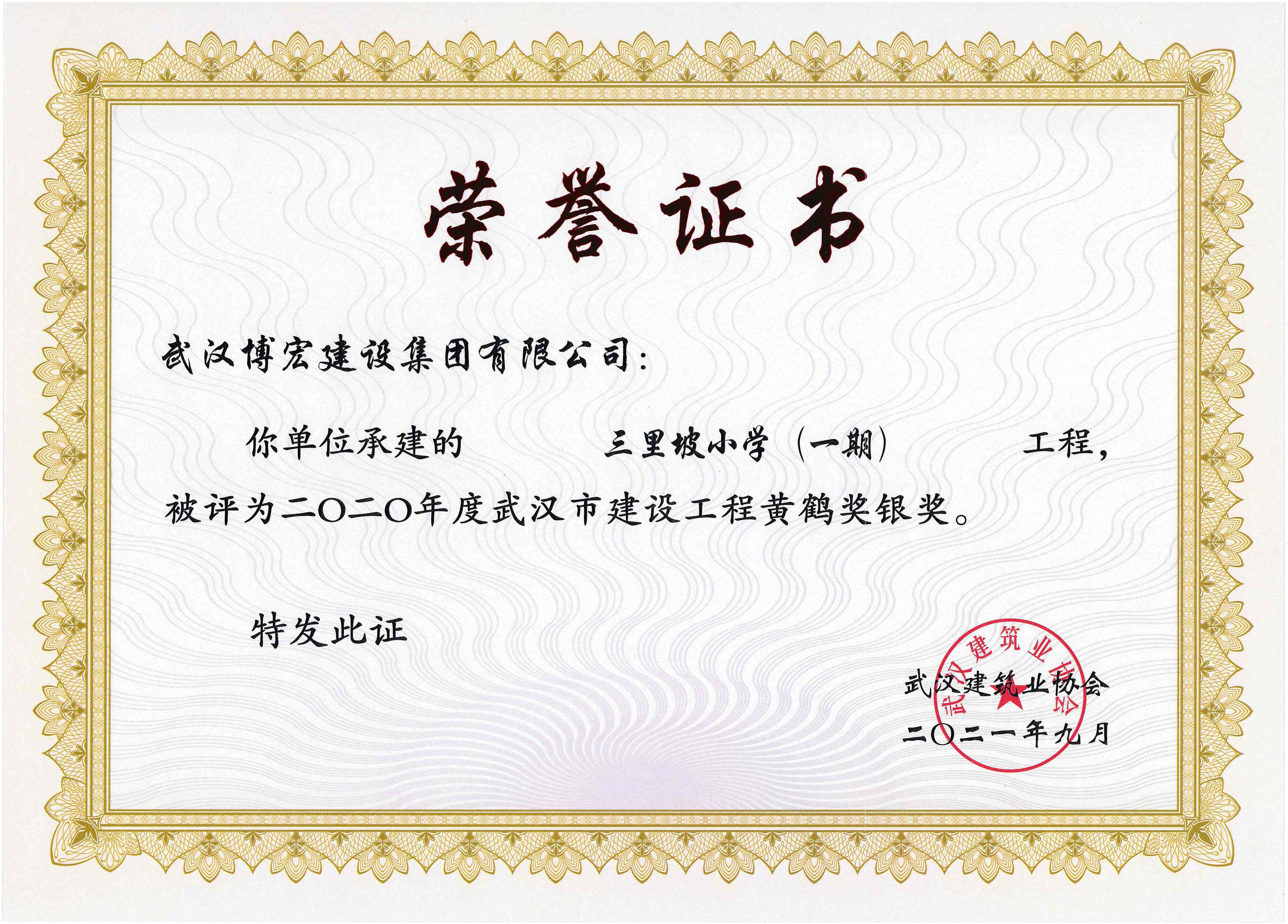2020年度武漢市建設(shè)工程黃鶴獎銀獎-三里坡小學(xué)(一期)