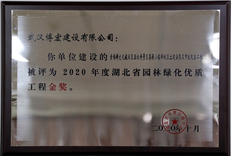 2020湖北省城市園林綠化優(yōu)質(zhì)工程金獎獎狀