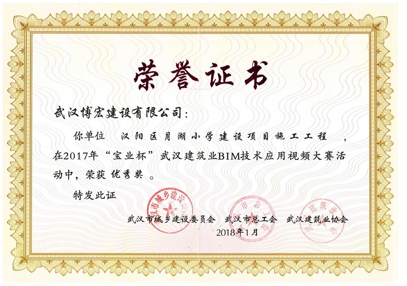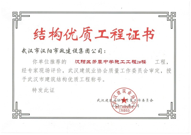 結(jié)構(gòu)優(yōu)質(zhì)工程證書(芳草中學(xué)綜合2號(hào)樓)