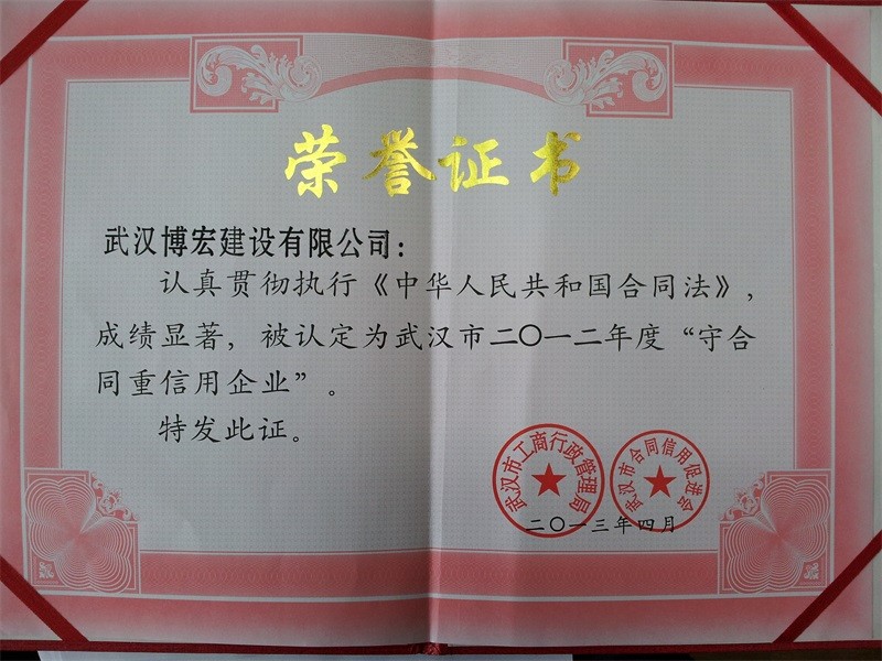 2012年度武漢地區(qū)市政行業(yè)先進(jìn)企業(yè)榮譽(yù)稱號(hào)