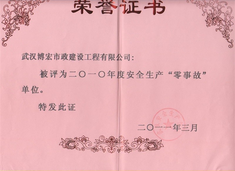 2010年度安全生產(chǎn)零事故單位