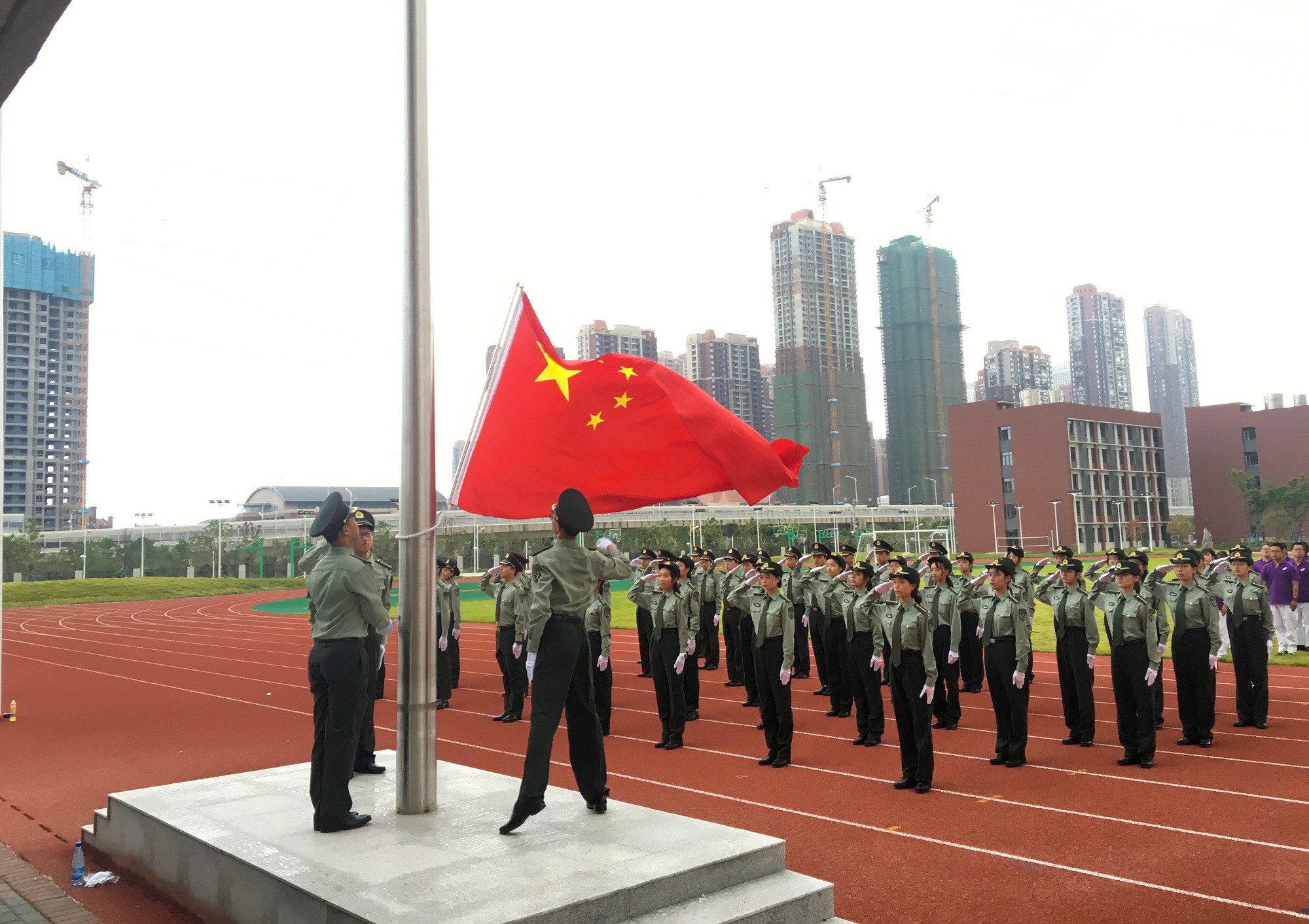四新中學(xué)作為百年名校武漢市第三中學(xué)的新校區(qū),學(xué)校建設(shè)中曾先后榮獲“湖北省建筑結(jié)構(gòu)優(yōu)質(zhì)工程”“武漢市十大魅力工地”等多項省市級建筑獎項。開學(xué)典禮中,廣大學(xué)生匯集在寬闊的操場上,神采飛揚,朝氣蓬勃,國旗儀仗隊身姿挺拔、步履鏗鏘,盡顯名校風(fēng)采。