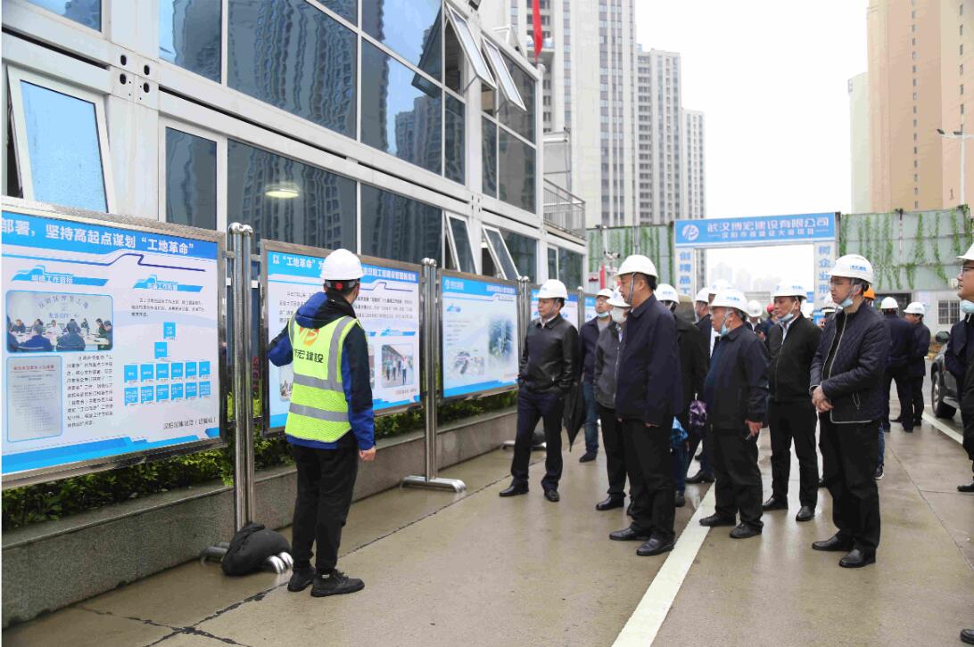 在漢陽市政建設(shè)大廈項目現(xiàn)場,仙桃市人民政府副市長徐國亮對現(xiàn)場安全文明施工管理情況進行觀摩,就項目綠色建造、疫情防控、工地革命、技術(shù)創(chuàng)新等各項工作進行了解。