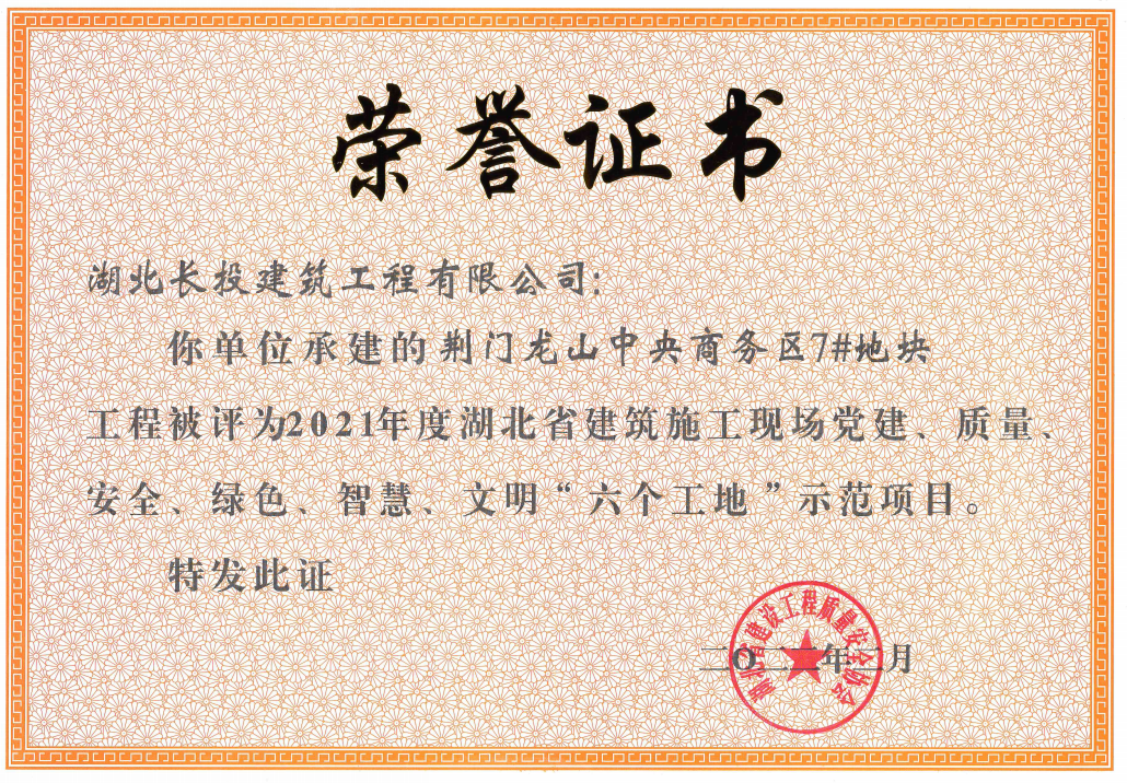 近日,2021年度湖北省建筑施工現(xiàn)場(chǎng)黨建、質(zhì)量、安全、綠色、智慧、文明“六個(gè)工地”評(píng)比結(jié)果正式公布,全省共計(jì)97項(xiàng)工程被評(píng)為示范項(xiàng)目,博宏建設(shè)新建商業(yè)服務(wù)業(yè)設(shè)施項(xiàng)目(中南科研設(shè)計(jì)中心)和博宏建設(shè)旗下合資公司湖北長(zhǎng)投建筑工程有限公司承建的荊門龍山中央商務(wù)區(qū)7#地塊項(xiàng)目雙雙獲獎(jiǎng)。