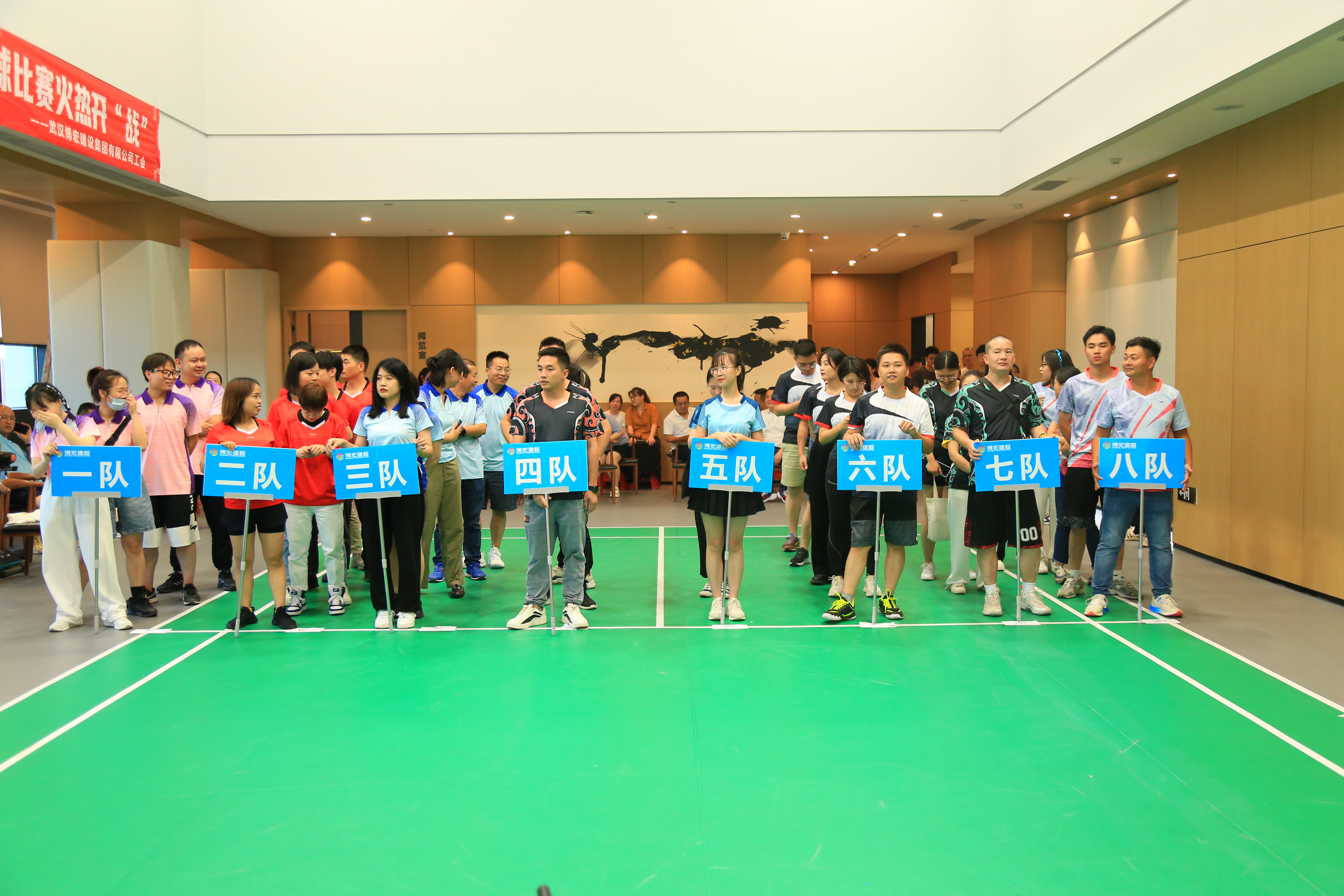 “暖心領(lǐng)航,‘羽’你同行”。為豐富職工業(yè)余生活,提升團隊凝聚力和向心力,博宏建設(shè)集團舉辦了第一屆“博宏杯”職工羽毛球賽,由51名職工組成的8支隊伍參加比賽。