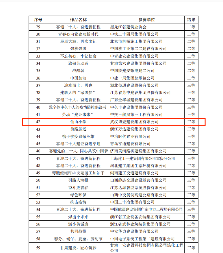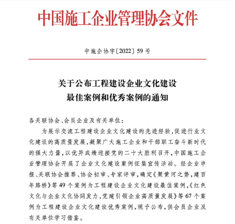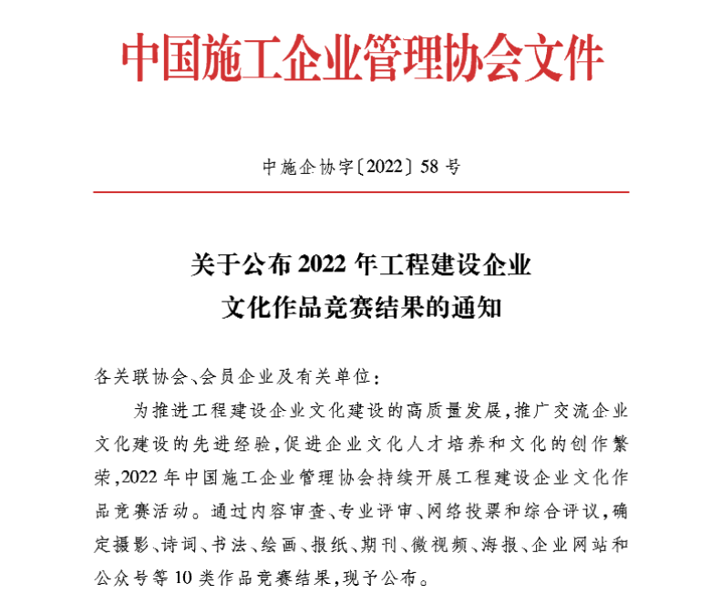 近日,中國施工企業(yè)管理協(xié)會發(fā)布“關(guān)于公布工程建設(shè)企業(yè)文化建設(shè)最佳案例和優(yōu)秀案例的通知”和“關(guān)于公布2022年工程建設(shè)企業(yè)文化作品競賽結(jié)果的通知”,經(jīng)過內(nèi)容審查、專業(yè)評審等環(huán)節(jié),博宏建設(shè)集團(tuán)《創(chuàng)新企業(yè)文化建設(shè) 凝聚企業(yè)發(fā)展新動能》案例獲評工程建設(shè)企業(yè)文化建設(shè)優(yōu)秀案例;仙山小學(xué)海報(bào)獲評海報(bào)作品競賽單元三等獎。
