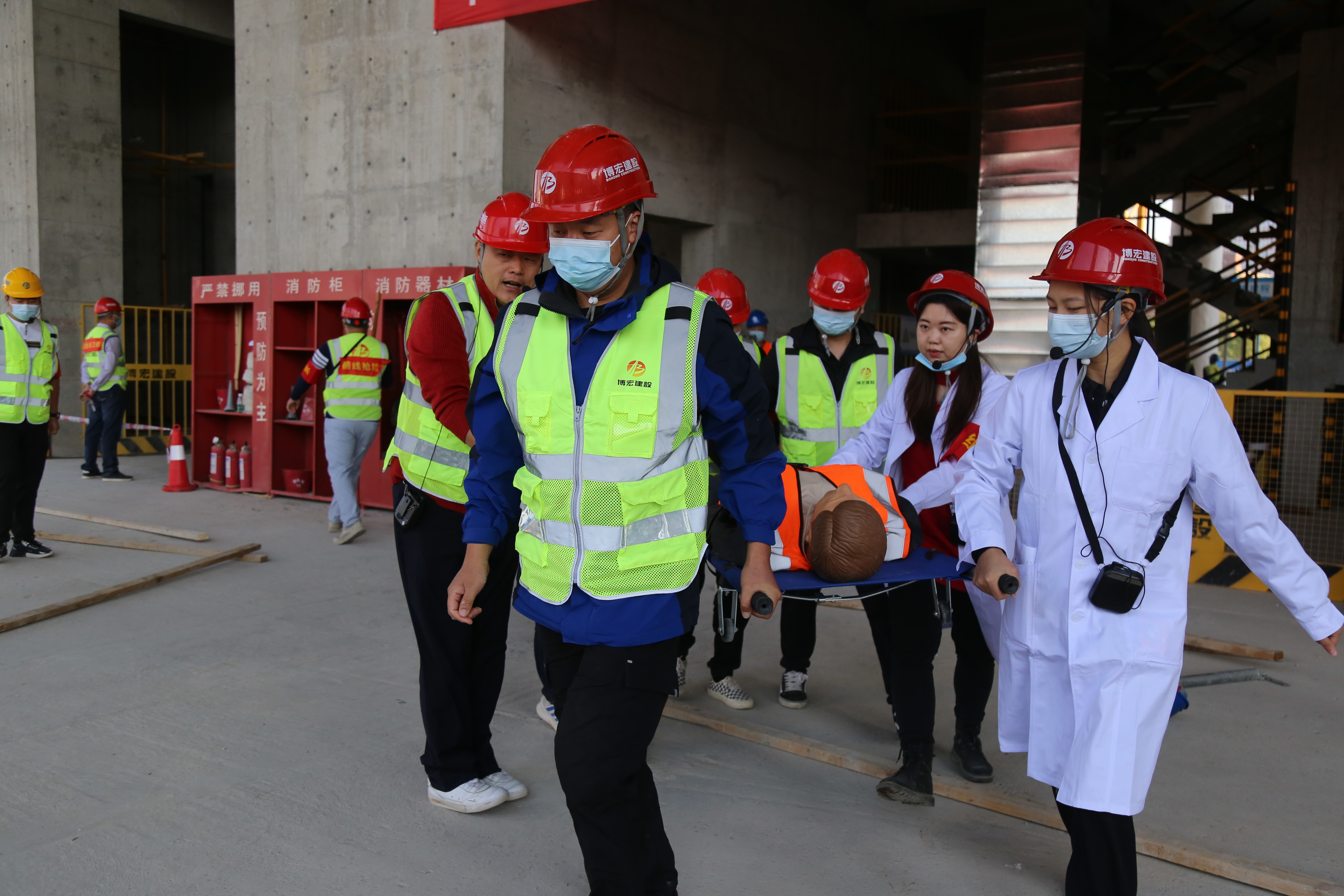 15日上午,一場緊張的安全生產(chǎn)應(yīng)急演練在博宏建設(shè)集團(tuán)中南科研設(shè)計(jì)中心項(xiàng)目舉行。武漢市城鄉(xiāng)建設(shè)局質(zhì)量安全管理處副處長孫斌,武漢市漢陽區(qū)建設(shè)局黨組成員、建筑管理站站長王晟,武漢市漢陽區(qū)建筑管理站工會主席王永進(jìn),武漢市漢陽市政建設(shè)集團(tuán)有限公司質(zhì)安部部長程振東,博宏建設(shè)集團(tuán)黨委書記、董事長、總經(jīng)理鄒勇觀摩了本次安全演練活動,現(xiàn)場30余人參與演練。