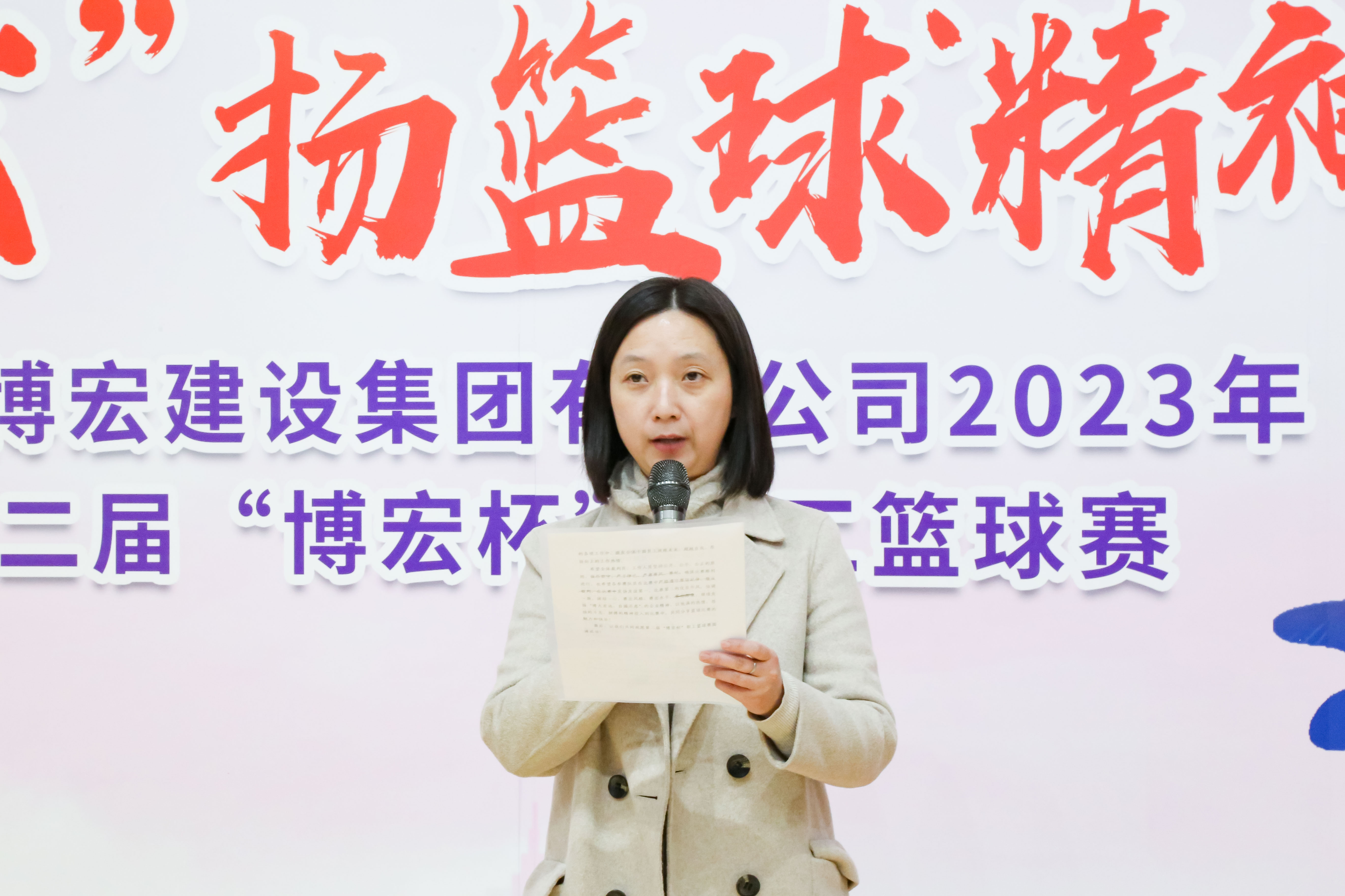 博宏建設(shè)集團黨委副書記、工會主席郭一清為開幕式致辭。她希望全體運動員以此次比賽為契機,外強體魄、內(nèi)修素養(yǎng),把頑強拼搏、勇攀高峰、精誠團結(jié)、永不言棄的籃球精神轉(zhuǎn)化為干事創(chuàng)業(yè)、攻堅克難的不竭動力,不忘初心、接續(xù)奮斗,以昂揚向上、奮發(fā)有為的精神狀態(tài)為引領(lǐng),助推公司更好更快發(fā)展。最后她預(yù)祝本次籃球賽取得圓滿成功。