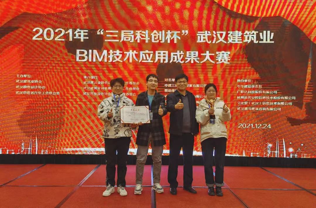 彭迎與同事獲得“三局科創(chuàng)杯”武漢建筑業(yè)BIM技術(shù)應用大賽銅獎