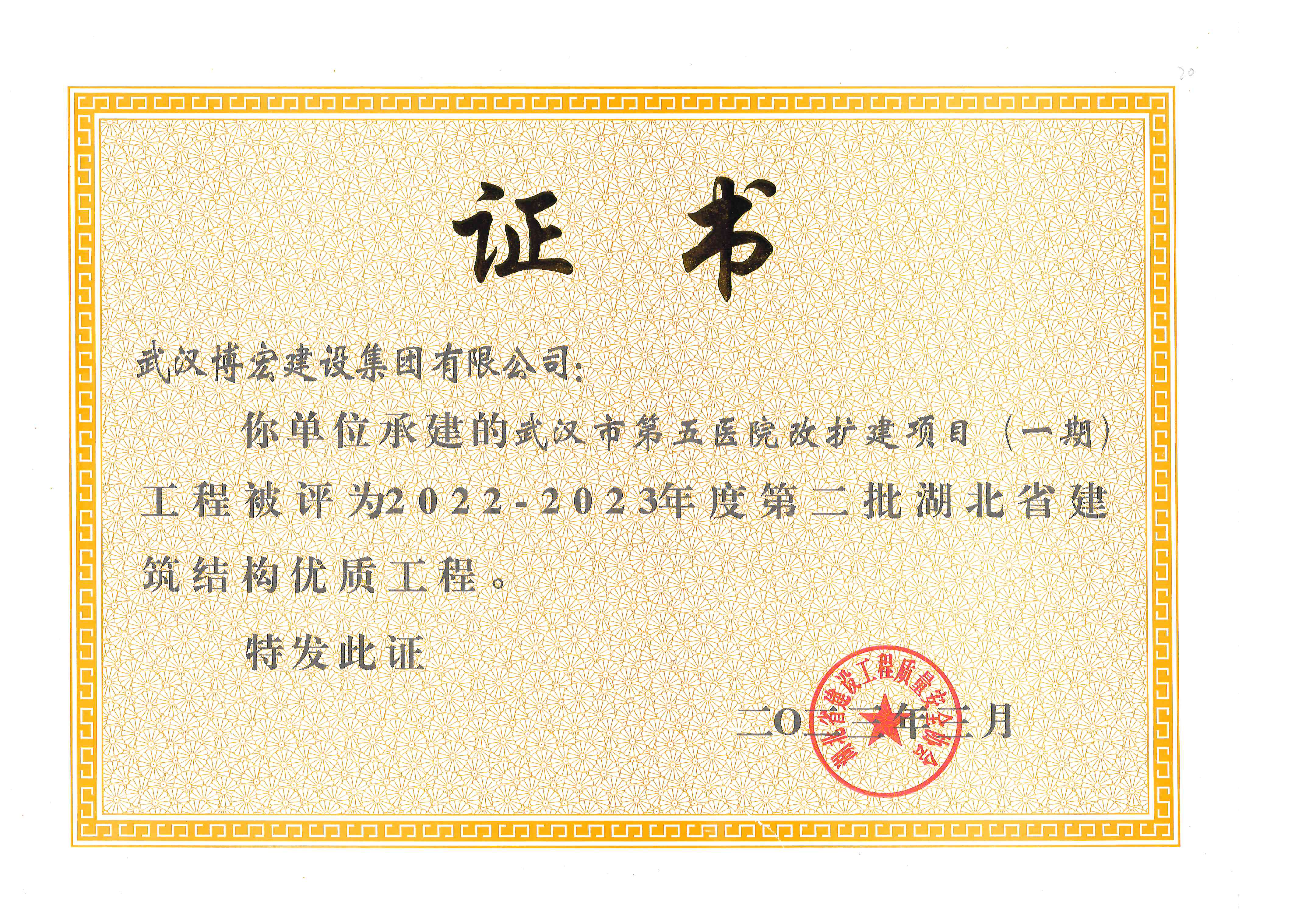 近日,湖北省住建廳2022—2023年度第二批湖北省建筑結(jié)構(gòu)優(yōu)質(zhì)工程項(xiàng)目名單出爐,由博宏建設(shè)集團(tuán)承建的武漢市第五醫(yī)院改擴(kuò)建項(xiàng)目(一期)、新建居住項(xiàng)目(長(zhǎng)投·長(zhǎng)河九里一期)(二標(biāo)段)3#、5#樓榮獲湖北省建筑結(jié)構(gòu)優(yōu)質(zhì)工程獎(jiǎng)。“湖北省建筑結(jié)構(gòu)優(yōu)質(zhì)工程獎(jiǎng)”是湖北省建筑結(jié)構(gòu)工程領(lǐng)域的最高獎(jiǎng)項(xiàng),獲得該獎(jiǎng)項(xiàng)標(biāo)志著該項(xiàng)目在工程結(jié)構(gòu)設(shè)計(jì)、工程施工管理、材料供應(yīng)保證、過(guò)程質(zhì)量控制等方面均達(dá)到省級(jí)領(lǐng)先水平。