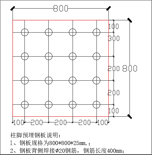 |柱腳預(yù)埋件節(jié)點示意圖